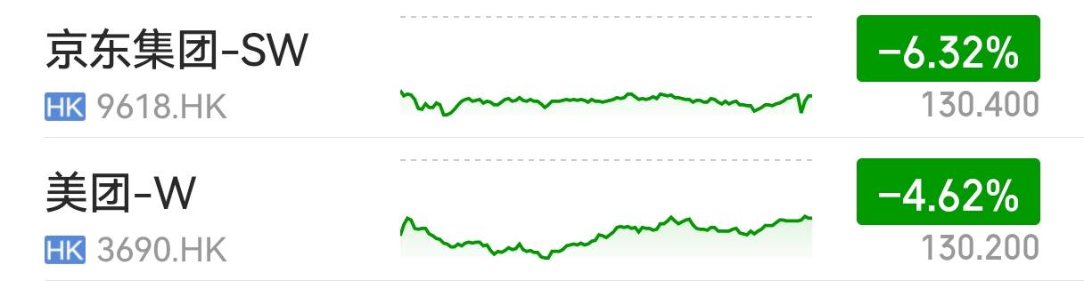 截至15时收盘,京东集团股价下跌6.32%,报价130.4美元,美团下跌4.62%,报价130.2美元。而在22日早些时刻,两只股票的下跌幅度一度超过7%。