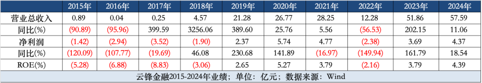 自成立以来,云锋金融表现低迷、常年亏损,直至2018年完成对美国万通保险亚洲60%的股权收购后,才逐渐实现稳定盈利。