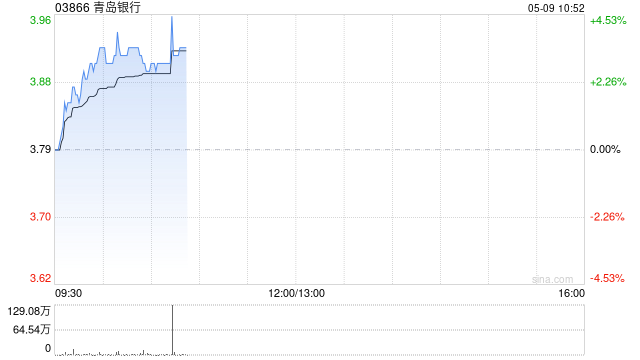 5月9日消息,港股内银股集体上涨,青岛银行涨超3%,招商银行涨超1%,中信银行涨近1%。
