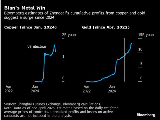 根据彭博估算,截至2025年4月底,边锡明的铜仓位已为其带来约2亿美元的账面盈利。
