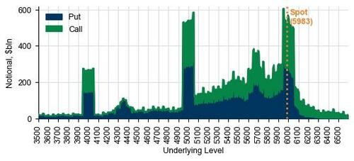 事实上,根据业内的统计,今晚集中到期的标普500指数期权(包括看涨和看跌期权)的执行价格,主要就集中在类似6000点这样的千点整数关口附近。